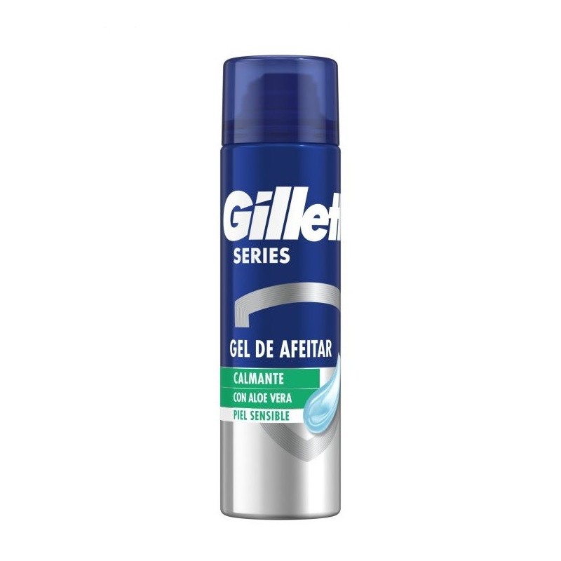 Gel de afeitar Gillette series para piel sensible con aloe vera, bote de 200ml.