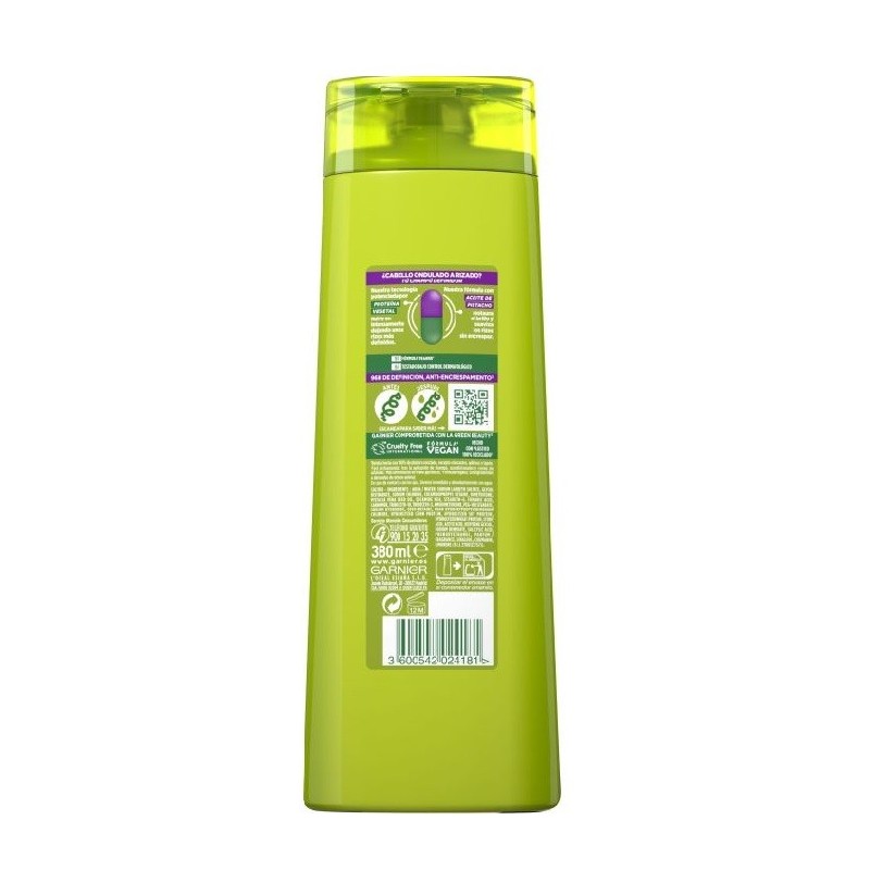 Su fórmula nutritiva con aceite de pistacho y potenciada proteína vegetal, restaurará el brillo natural de tu pelo suavizando a su vez los rizos sin encrespamiento y proporciona una nutrición intensa dejando unas ondulaciones perfectamente definidas.