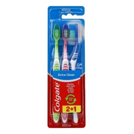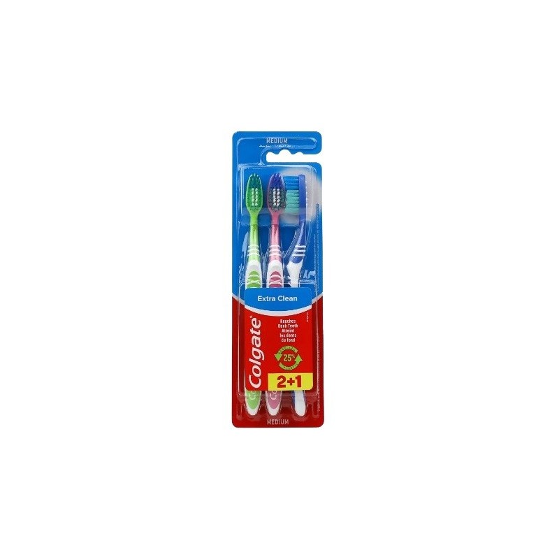 El Cepillo dental Colgate Extra Clean con dureza media y con la punta limpiadora llega hasta los dientes situados en la zona más profunda.