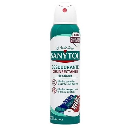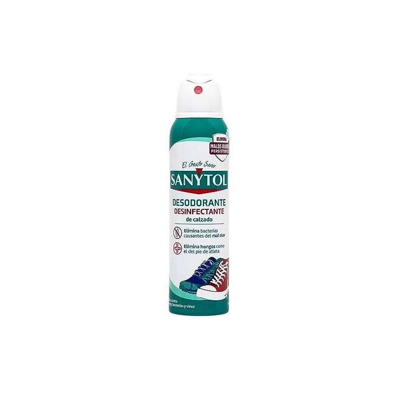 El Sanytol desodorante desinfectante para calzado, elimina las bacterias causantes del mal olor y es eficaz contra hongos, bacterias y virus. Los gérmenes en el calzado son los causantes del mal olor persistente y pueden provocar infecciones en los pies. Sanytol desinfectante asegura una higiene total de calzado porque: