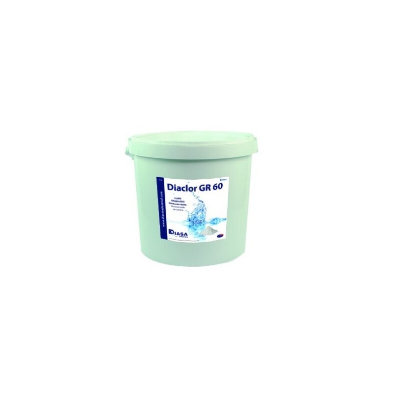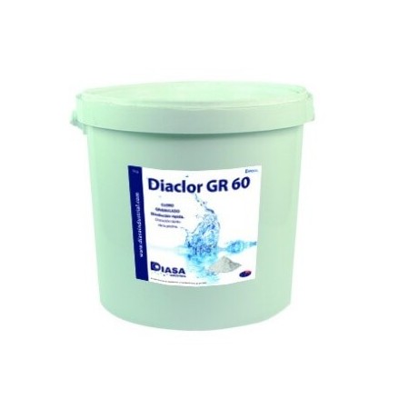 DIACLOR GR 60 CLORO DISOLUCION RAPIDA: Cloracion rapida del agua de la piscina, tratamiento de choque para solucionar problemas de suciedad en el agua. Bote de 5kg granulado