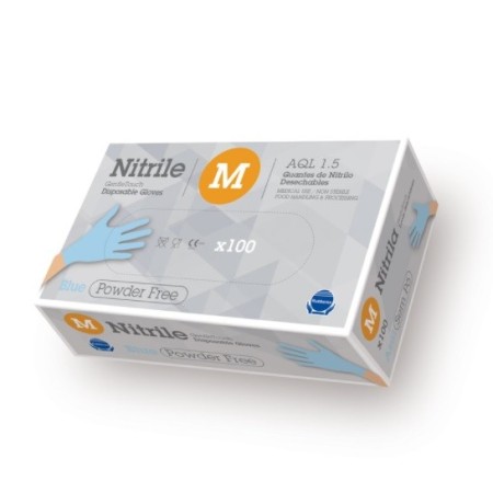 Guante de nitrilo sin polvo, ambidiestros, no estériles.