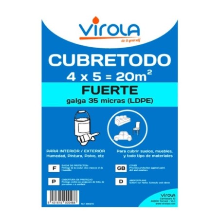 Cubretodo plástico grueso (galga 35 micras) para pintar, medidas de 4x5 metros.