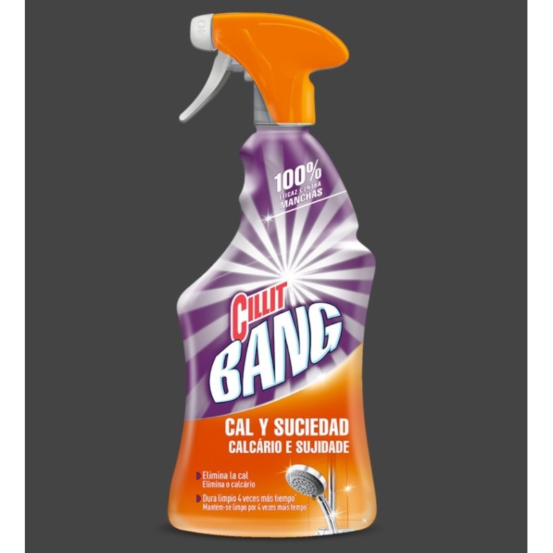 Limpiador Cillit Bang para eliminar cal y suciedad, botella de 1 litro con spray.
