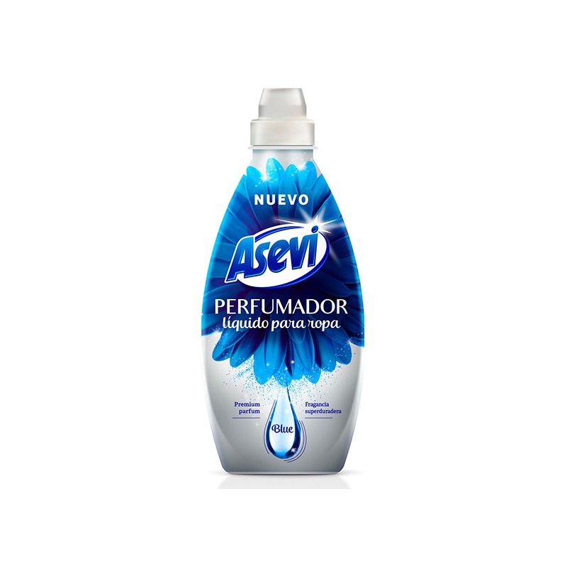 Disfruta de una auténtica explosión de perfume intenso y superduradero en tu ropa con Asevi Blue. Una exclusiva combinación de fragancias Premium, dotadas de la última tecnología para liberar perfume durante semanas. Perfecto para perfumar todo tipo de ropa, toallas, ropa sintética y deportiva.