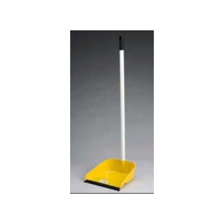 Recogedor filo de goma y mango macizo rayado, color verde o amarillo.